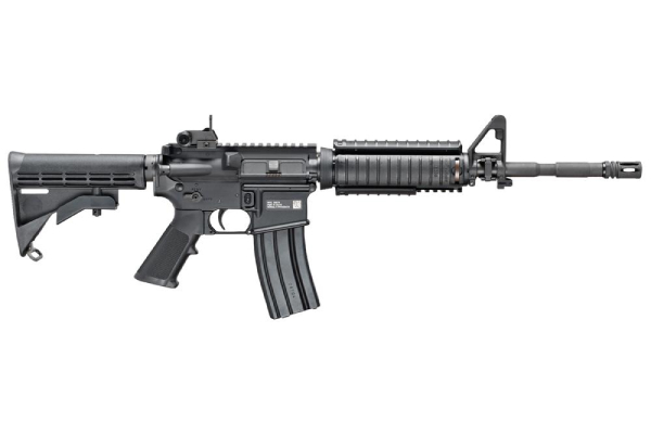 In the U.S. Military's never-ending quest to improve Soldiers' weapons, the M4 was born. M4 is the Military's Model 4 carbine. Still a variant of the M16, the M4 is lighter and shorter. Chambered in 5.56x45mm NATO, the M4 is a direct impingement, gas-operated, air-cooled, magazine-fed carbine. With the 1994 introduction of the M4 carbines to Soldiers, they found that it was a great improvement for modern-day, close combat war tactics. The 5.56 round that the M4 fires is a more effective ammunition for stopping power, and has more penetrating power against modern-day body armor. By 2005, the M4 had replaced most of the Military's sub-machine guns, and with a 14.5" barrel and a folding stock, the M4s have also replaced a select number of Military pistols.