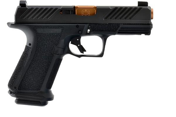 Now let's move down the line to another GLOCK-like firearm. And this is the MR920 from Shadow Systems. Again, another gun that you saw previously from Alec and I doing this video, or doing a similar video, but we're out here at the range today doing a little bit of shooting. So that's fun. And you'll notice, just to be consistent here, I do have a Trijicon RMR, but I got it turned off. I am just running the sights that it comes with. Now, speaking of sights, unlike the 19X and the M18, it only has an illuminated front sight, or I should say a luminescent front sight. So nothing happening in the rear, other than your standard rear iron sight, which still offers a great sight picture, and having that nice, bright dot up front makes it very easy to get that target acquisition. So, that's the right one. Let's go shoot this guy. Wouldn't really matter too much which magazine I grabbed there, but this is a 19-frame, and the OZ has more of a 17-frame. So if I were to shot its magazine, this magazine wouldn't have been compatible with it. So it didn't want to do that.