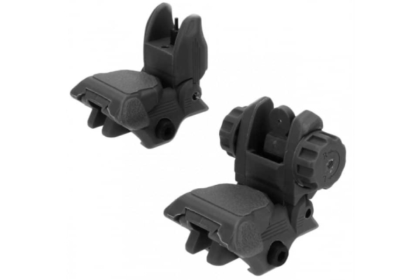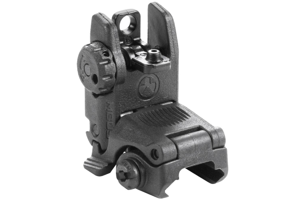 All right? Oh. Yeah. That feels good. So when it comes to iron sights, especially for new shooters out, they may not know this, typically this guy here on this night's rear sight, you're going to have a little peep. All right? Pretty simple. We've all played Call of Duty. Right? You all see how the iron sights line up there. You've got a peep, you got your front sight post, and you line it up with the front sight post is in the middle of your peep or your circle. Right? Easy enough. Cool. Now some flip ups too have what's called an O2 sight, which is a larger opening made for a little bit more close quarters. You have your distance one that's going to be a little bit smaller opening made for a little bit more precise shots out to distance. Okay? The nights here doesn't have that O2 sight. It is just your distance sight. Now, of course, this one here, some of your sights don't have a elevation adjustment. All of that's done through the front sight post right up here. Okay? And you might be able to see right on top where it says up and it should have an arrow pointing the direction of up. Just keep in mind it's not the front sight post that's moving up, it's your point of impact. Okay? Same thing when it comes to your windage. All right? So granted, it's easy for a red dot, like I said, to bring your rifle up and then boom you're just right on target. You see your red dot, whatever it is, like for instance, I've got my RMR turned off right now because I'm practicing with my irons, but boom, there you go, red dot. I can engage it all day easily knowing exactly where it is. But if my optics were to fail me, if I were to forget to replace my battery, whatever it might be, I need to be able to know exactly how to engage with my iron sights and I need to be able to do it effectively. So take the time, get out there, and zero your iron sights. All right? So let's just make sure I am pretty well zeroed here. Let's take a couple of shots with it. Yeah. I feel pretty good with that. So I do have these zero to about a hundred yards or so I should be hitting a little low here, which makes complete sense. All right? So let's go for it. There we go. Route on that one. Let's go ahead and hit that reload. All right. Nice. So iron sights are definitely important because, like I said, if your optics fail you or something like that, you need to be able to have that backup sight system so that way you can still stay in the fight, if need be. It doesn't matter what your situation is, if you don't have sights on your gun, you're SOL. Right?