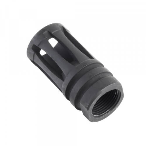 Firearms are endlessly customizable these days. It's not to say that folks haven't been altering their guns over the years; however, the aftermarket support of today is astounding. Adding accessories allows shooters to create firearms that suit their exact needs. Adding or changing muzzle devices is a great way to obtain desirable shooting characteristics from your preferred firearm. What Is a Muzzle Device? For many years, firearms generally did not have gadgets on the ends of their barrels, which is known as a bare muzzle. Eventually, designers added accessories to bare muzzles to change the firing properties of firearms. These muzzle devices break down into two broad categories: muzzle brakes/compensators and flash hiders/flash suppressors. What is a Muzzle Brake or Muzzle Compensator? Before we go over muzzle brakes and muzzle compensators, we need to discuss recoil and what causes it. High-pressure gas escaping the muzzle drives a firearm backward, just like a jet engine pushes an airplane forward. Thrust from gas moving in a straight line leaving the muzzle pushes a long gun into your shoulder or flips a pistol in your hands. Muzzle brakes reduce recoil by diverting this high-velocity gas to the sides of the barrel using ports (holes). Some muzzle brake designs also redirect gas backward to slightly pull a rifle away from the shoulder, further cutting recoil. Muzzle brakes allow for a more comfortable shooting experience, especially with firearms chambered in large calibers with strong recoil. AAC 51T Muzzle Brake. Note the large side ports giving effective recoil reduction. This muzzle brake also acts as a quick detach mount for AAC suppressors. While muzzle brakes reduce recoil by redirecting gas to the sides or towards the rear of a barrel, muzzle compensators minimize muzzle climb/rise. Muzzle rise or climb occurs when the recoil of multiple rapid shots raises the end of the barrel. This climb causes sights to move off target, decreasing accuracy. Compensators work against muzzle rise by directing gas upward, which pushes the muzzle down. Some muzzle devices combine the characteristics of a muzzle brake and compensator to mitigate both recoil and muzzle climb. The most effective combination muzzle brake/compensators virtually eliminate recoil and muzzle climb, causing a firearm to remain very stable under rapid fire. Bravo Company GFC MOD 1 Compensator. This muzzle device combines the characteristics of a brake and compensator. Who Benefits From Muzzle Brakes/Compensators? While muzzle brakes/compensators lower recoil and muzzle rise considerably, they also significantly increase flash and blast. We will cover muzzle flash/blast in the next section. However, some folks, like competition shooters, usually do not mind the harsh blast and flash. These muzzle devices allow them to shoot much faster. In competition shooting, fractions of a second can mean the difference between winning and losing. Regardless of the purpose, muzzle brakes/compensators tame firearms and make them more enjoyable to shoot. What is a Flash Hider or Flash Suppressor? When a firearm fires, hot gas pushes the bullet down the barrel. After the bullet leaves the barrel, all this gas dumps out into the atmosphere. This hot gas also carries traces of unburned gunpowder, and when the gas/powder hits oxygen in the air, it creates muzzle flash and blast. While muzzle flash always happens, it's more apparent in low light conditions. Muzzle flash is not a good thing as it blinds the shooter in low light. Flash hiders or flash suppressors do not take away flash; they just make it harder to see. Flash hiders fasten to the muzzle and have slits or prongs to split and dissipate the hot gas to hide or suppress the flash. Some flash hiders feature minor recoil mitigation like the A2 Birdcage flash hider. The A1 and A2 Birdcage flash hider also kicks up less dust when one fires from the prone position (flat on the ground) due to its closed bottom. Flash hiders that let gas escape in 360 degrees disturb the ground beneath a shooter. An A2 Birdcage flash hider, note the closed bottom section. There are two broad kinds of flash hiders or flash suppressors: prong and closed type. Prong type flash hiders have three to four open prongs. While prong type flash hiders often do the best job of cutting flash, the open tines can snag on things like tree limbs or other items in the environment. Closed flash hiders, like the A1 and later A2 Birdcage, are slightly less effective than their prong counterparts. However, they have the benefit of hanging up less on things. Wilson Combat Accu-Tac Flash Hider. This flash hider is representative of a three-prong flash hider. Who Benefits from Flash Hiders? As we stated earlier, muzzle flash is inconvenient for the shooter because it blinds them when shooting in low light. Folks that need more flash reduction than recoil mitigation do well using a flash hider. Also, when shooters operate close to one other in a team, flash hiders are fitting since they limit muzzle blast and flash, which can be quite disorienting. Conclusion With the addition of muzzle devices like flash hiders and muzzle brakes, we can squeeze the most control out of firearms. Whether they control flash or tame recoil and muzzle rise, these muzzle devices open the firearms experience up to more people. Gain control over your firearm with our large variety of muzzle devices.