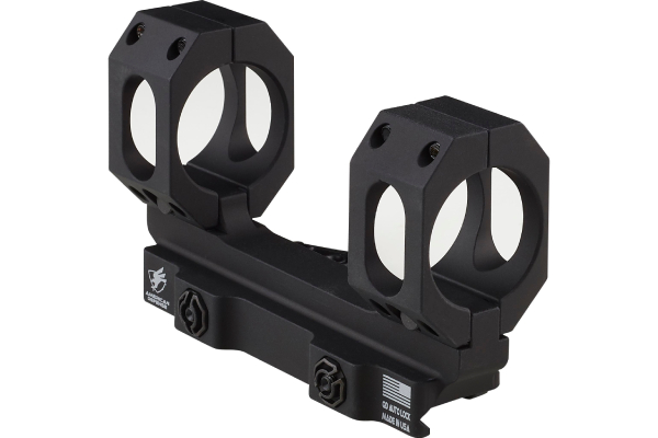 This is an interesting option because it utilizes horizontal fasteners instead of the vertical seen on most setups. Made in the USA, the AD-RECON-S mount is made for putting high power glass onto a flattop style AR-15 or bolt action rifle. It is a straight up scope mount with no eye relief built in. It is precision machined from 6061 T6 aluminum and finished in hard coat T3 Mil-Spec anodize. It features the Patented QD Auto Lock Lever system to accommodate both in spec and out of spec rail systems.