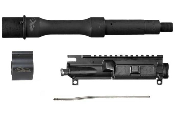 This incredible Upper Receiver Starter Kit from Anderson Manufacturing features everything you need to complete a new upper in .300BLK! This model includes a complete upper receiver, 7.5" .300 Blackout barrel, pistol length gas tube, as well as a gas block W/ set screws. The 7.5" M4 barrel is perfect to start your next build and add to your AR-15 collection. The barrel on this kit is constructed from 4150 Chrome Moly Vanadium Steel with a Parkerized finish. Featuring a pistol length gas system with a .750" gas port and a 1:7 twist, this barrel provides accuracy and precision for your .300 Blackout build.   The Stripped Upper Receiver is machined from 7075 T6 Aluminum forging. Featuring M4 feed ramps, this upper receiver is machined to Mil-spec and can be used with multiple calibers on the AR-15 platform. This upper receiver comes in type III hard coat black anodize. Match this upper with one of your favorite lowers to complete your build. The AM-15 Low Profile Gas Block Assembly is intended to fit underneath free float rails. This Gas Block is made from 12L14 Steel and is compatible with .750 diameter barrels. Nitrite finish and laser engraved with the Anderson Manufacturing Logo on one side. Roll Pin and Set Screws are included with this gas block.