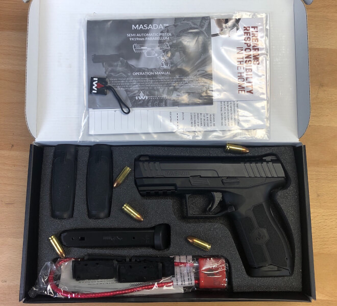 The American pistol scene is awash with polymer-framed, striker-fired handguns. In a boringly homogeneous market, the advent of pistol-mounted miniature red dot sights (RDS) is a real game-changer. Folks have custom milled their pistol slides for miniature red dot sights (RDS) for some time. Most companies listened to the plight of their customers and now offer optics ready handguns. Pistols equipped with RDSs are the new "Wonder Nines" of the 21st Century. Design Characteristics Israeli Weapons Industries (IWI) has released its long-awaited Masada handgun as of the publication of this article. Made in Israel, the 9mm Masada is polymer-framed and striker-fired. The Masada primarily follows the lines of traditional striker-fired pistols along with modern touches. The pistol utilizes a low bore axis and an ergonomic grip. These features should make the Masada a very comfortable shooter. Specs and Features The IWI Masada ticks all the boxes: